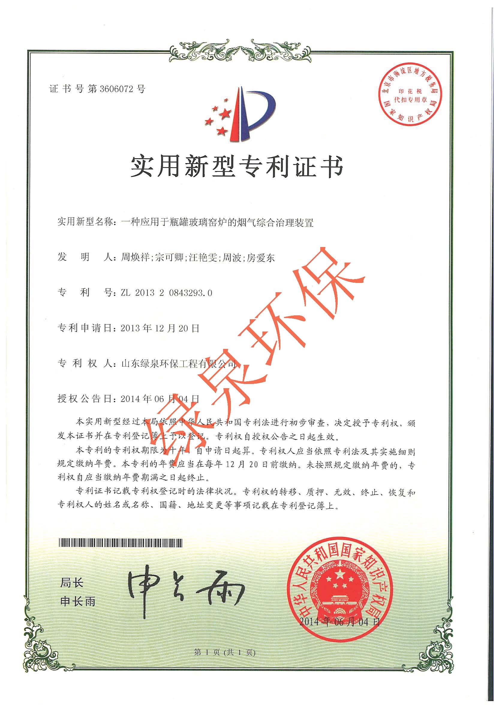 我公司以科技进步为先导,不断的进行技术创新,开发新技术,并将专利技术转化为产品,提升了公司的综合竞争力,促进公司的快速发展。目前,公司共有18项国家专利,其中发明专利三项,实用新型专利十五项。